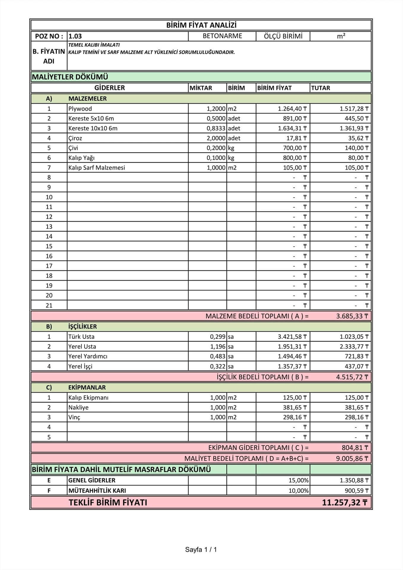 Bu hizmet, tasarım kriterlerinin belirlenmesi, yaklaşık maliyet hesabı, nakit akış planının oluşturulması, maliyet ve nakit akışın izlenmesi ve raporlanmasını içermektedir.